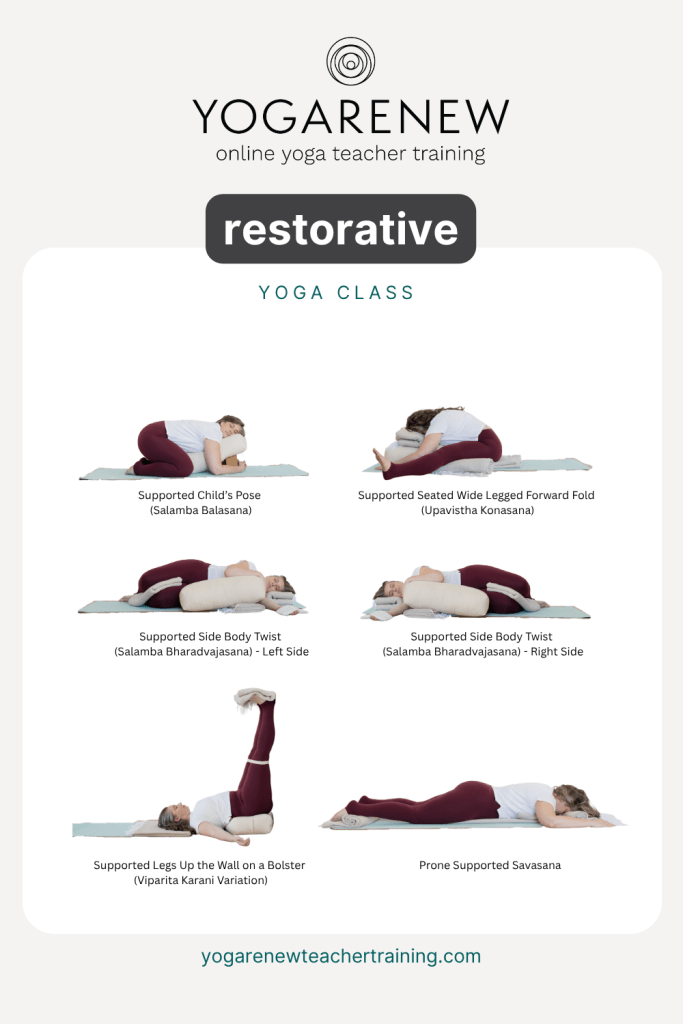 Twists in restorative yoga are less about depth and more about gentle unwinding.