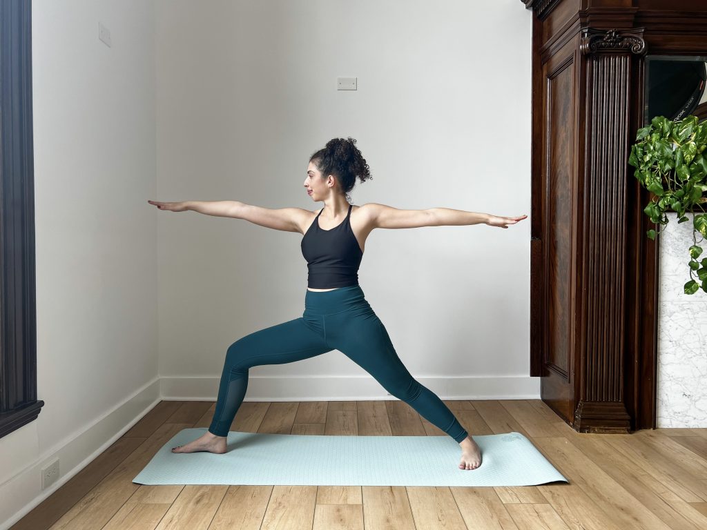 Leo energy also taps into the warrior spirit, with loads of enthusiasm. Think about what is worth fighting for. The wisdom of Leo shares the significance of expressing your uniqueness and originality. Shine your light for the world to see. What brings you joy? Go after it. In Warrior 2 feel the heart space and solar plexus open as your arms expand, tapping into your self-confidence, generosity and love.