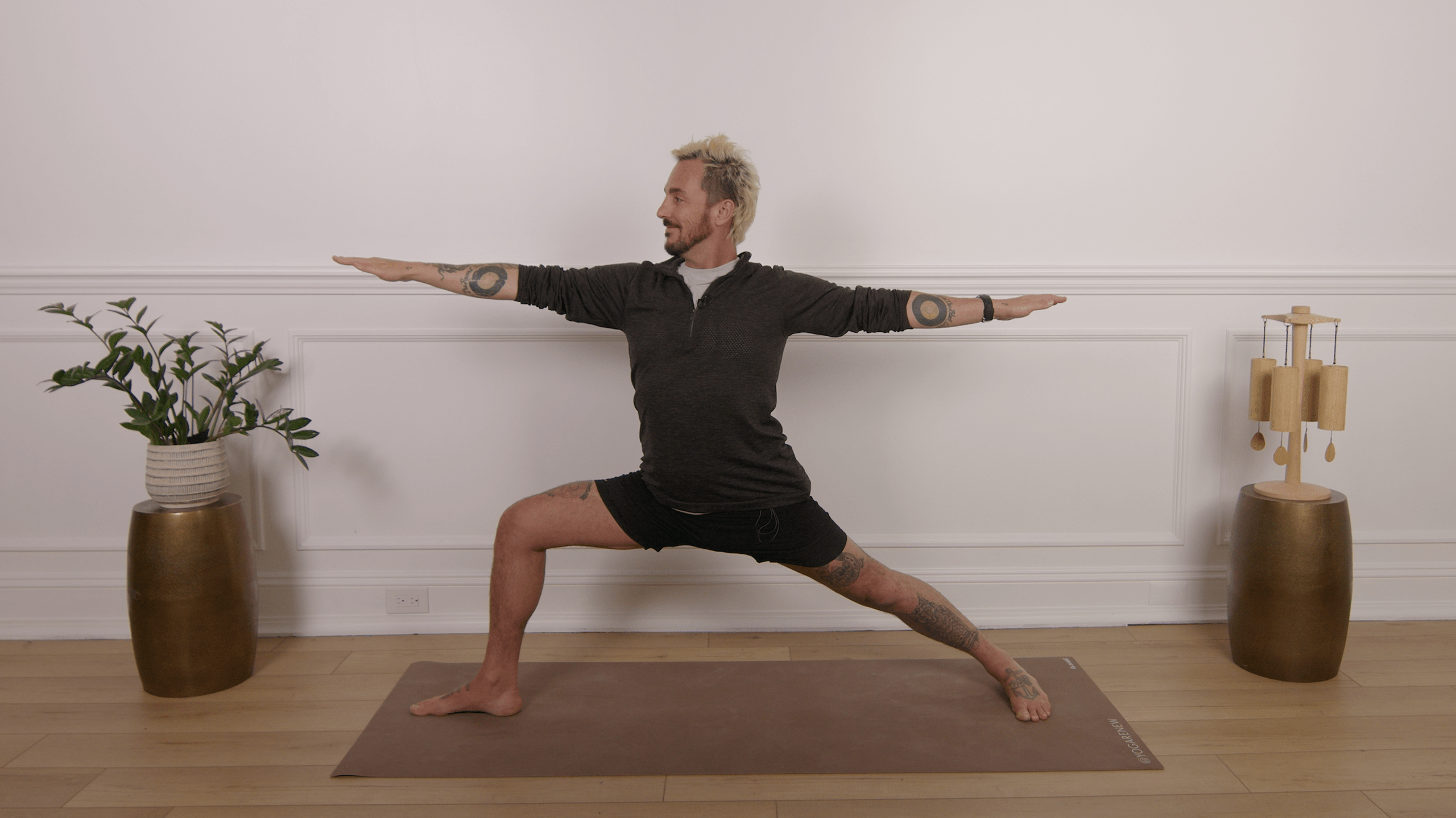 Dynamic Flow: Move in and out of Warrior II with breath to build heat and awareness
